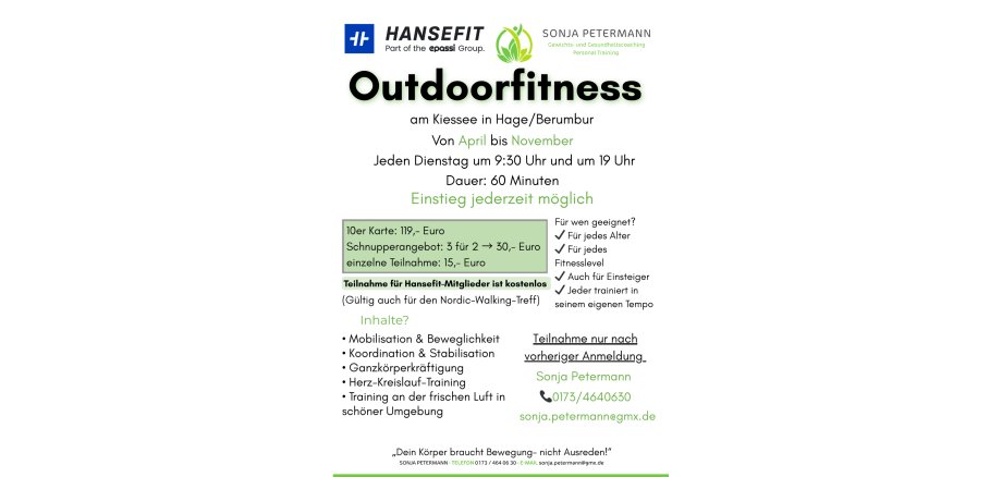 Training an frischer Luft und in schöner Umgebung für mehr Beweglichkeit, Koordination usw..